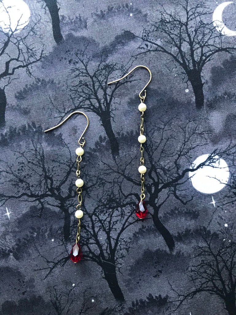 Since Halloween is next week, I decided to post two earrings that are available for purchase in my shop. They are both inspired by two of my favorite gothic novels published in the 19th-century: Frankenstein (1818) by Mary Shelley, and Bram Stoker’s Dracula published in 1897.